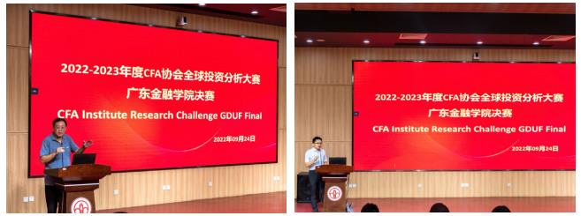 2022年9月24日,由CFA协会与公司联合主办的2022-2023年度CFA协会全球投资分析大赛云顶国际决赛在公司北教103举行。公司经理项后军教授、CFA协会负责人李子斌博士、公司副经理李日新副教授、中山大学岭南公司戴芸副教授、品职教育郭静老师、粤科风投李研老师以及公司教师胡妍博士、李琰钰博士与杨睿博博士出席了本届比赛。