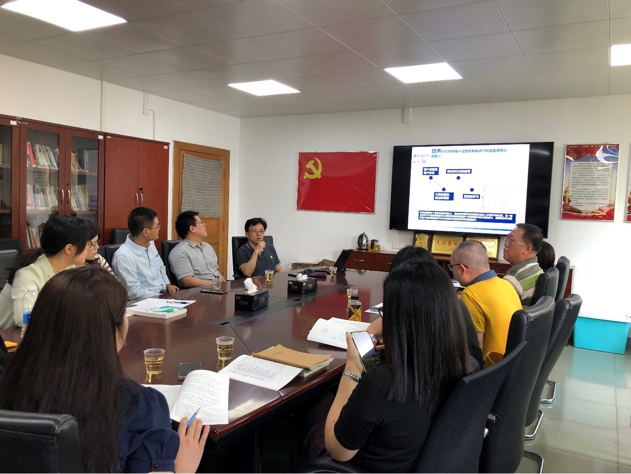 利用这次难得的机会,参会领导、教师们在《财富管理》课程的授课范围、方法以及特点等方面进行了广泛的探讨和交流。易董事长高屋建瓴地指出厘清财富管理与资产管理的差异是理解《财富管理》课程的关键之处,授课教师们应深刻认识到该课程不仅有益于提高员工的家庭财富管理能力,而且也为其从事相关职业奠定了基础。