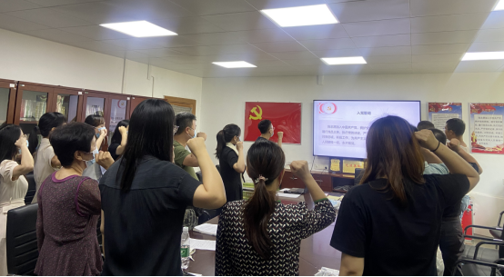 组织生活会以重温入党誓词拉开序幕,全体党员面向党旗,心怀敬慕,庄严宣誓。