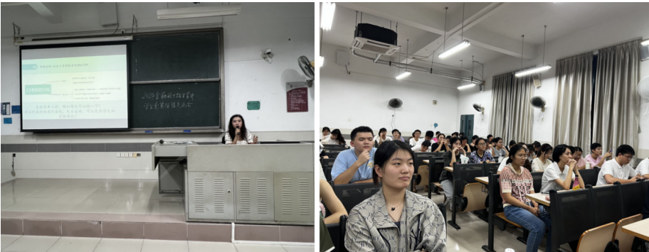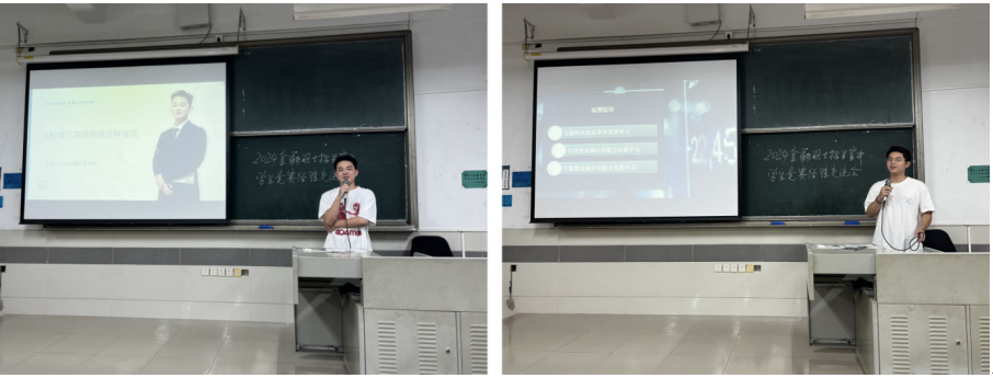 2020级金融学专业高楷泓获得三次比赛的奖项。他重点介绍了金融科技比赛的内容和评分细节,并提醒大家金融科技比赛的时间较长,对精力和体力是极大地考验。