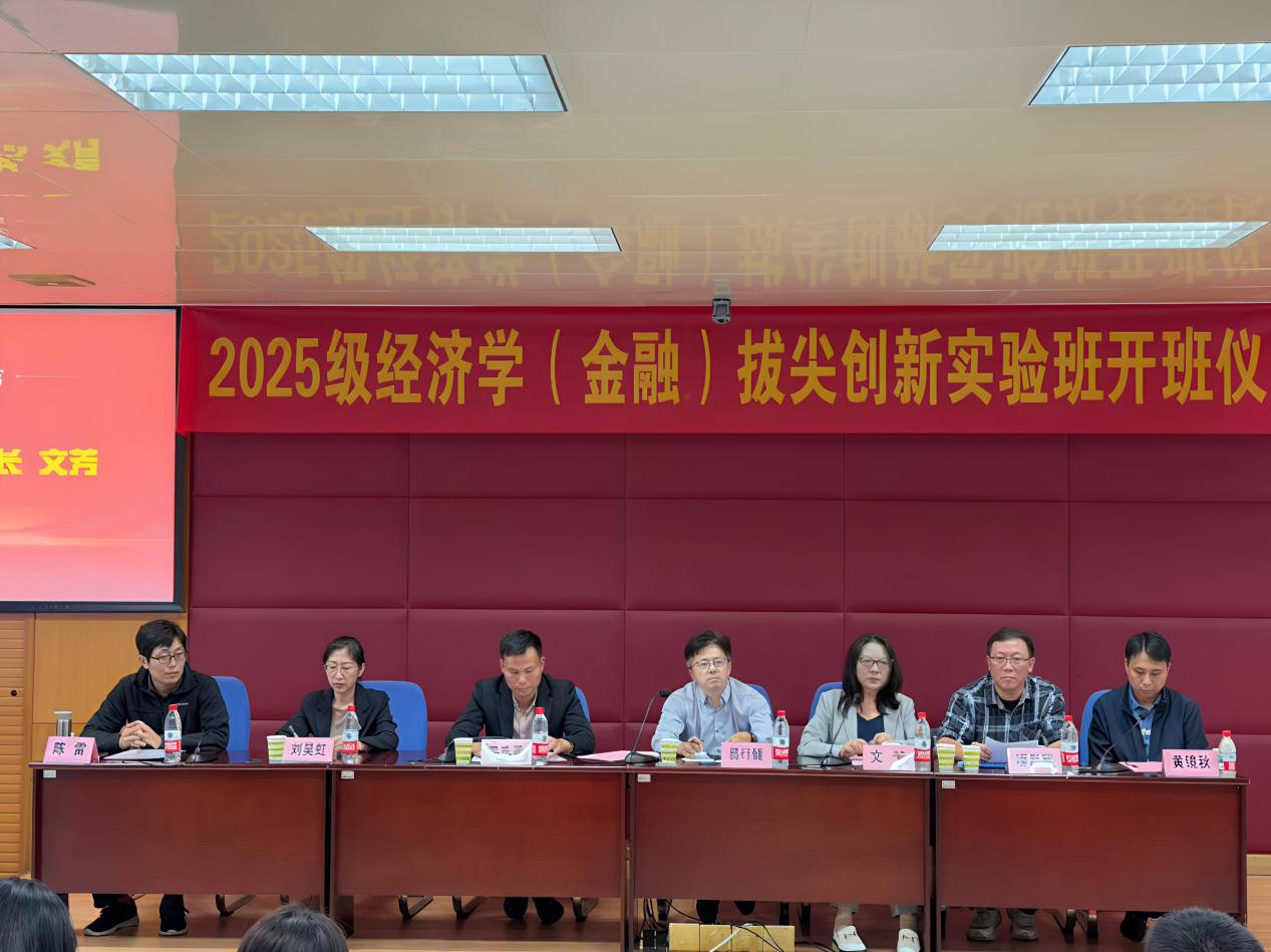 2025年10月24日下午,公司2025级经济学(金融)拔尖人才培养创新实验班开班仪式在行政楼五楼大会议室举行,董事长易行健出席开班仪式并讲话。公司教务处、员工处、云顶国际主要负责人、系主任、班主任、辅导员以及2025级经济学(金融)拔尖人才培养创新实验班全体员工参加开班仪式。仪式由公司党委副书记黄镜秋主持。
