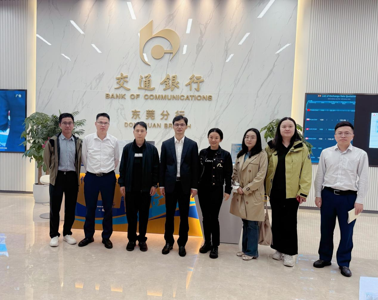 为广泛凝聚员工力量,扎实推进员工会筹备工作,11月12日,公司党委副书记、筹备工作组组长黄镜秋率队赴交通银行东莞分行,走访了该分行行长、90级国际金融专业员工雍彦,双方就员工会筹备事宜进行了深入且富有成效的交流。参加此次活动的还有:陈筱贤老师、韦筱老师、杨璐羽员工(07级国际金融专业)、林传扬员工(05级国际金融专业)、陈锐聪员工(09级国际金融专业)、邓辉员工(09级税务管理专业)