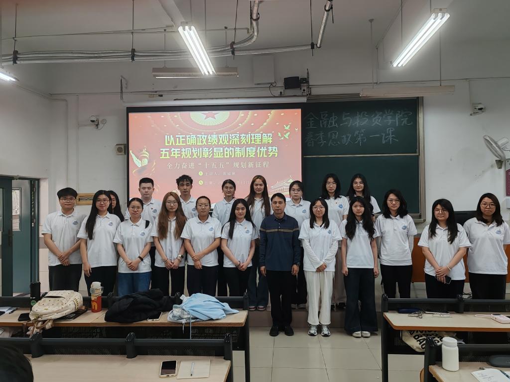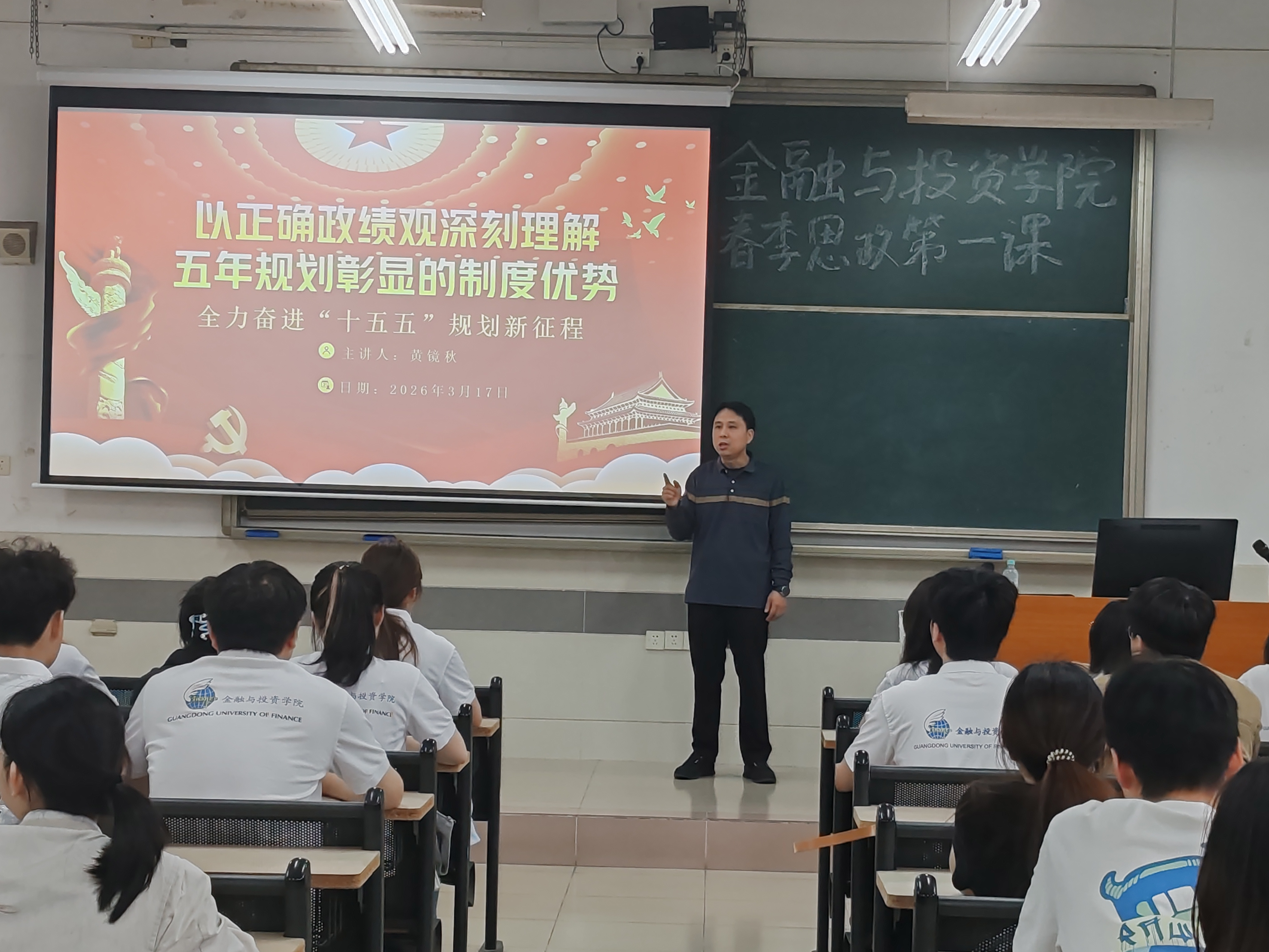 云顶国际副书记黄镜秋紧扣树立和践行正确政绩观学习教育,讲授《以正确政绩观深刻理解五年规划彰显的制度优势全力奋进“十五五”规划新征程》为主题的“思政第一课”。他结合党的二十大以来国家发展取得的历史性成就,从“五年规划的历史脉络与战略意义”、“正确政绩观的核心内涵与时代要求”、“青年学子在‘十五五’规划中的使命担当”三个维度展开讲解。他以“十四五”时期我国经济总量突破百万亿、脱贫攻坚战全面胜利等鲜活案例,生动阐释了五年规划作为国家治理体系的重要组成部分,如何集中力量办大事、推动高质量发展的制度优势。同时,他强调正确政绩观是“为民造福”的价值导向,是“功成不必在我、功成必定有我”的境界担当,鼓励同学们将个人发展融入国家战略,在专业学习中锤炼过硬本领,在社会实践中增长智慧才干,以实际行动树立和践行正确政绩观,为国家实施“十五五”规划贡献青春力量。